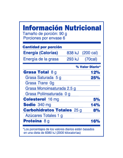 Maíz blanco trillado, Queso mozarrella, Margarina, Azúcar blanca, Sal yodada, Contiene: lecha, lactosa